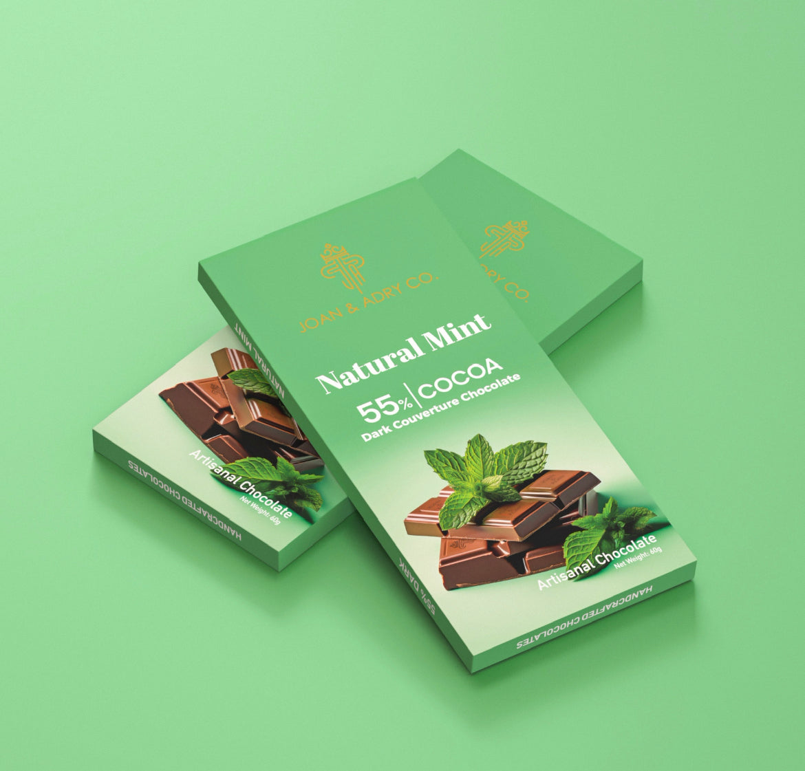This 55% dark couverture chocolate bar is expertly crafted with natural mint, delivering a harmonious balance of rich cocoa intensity and refreshing mint flavor. Made with high-quality ingredients, it offers a sophisticated taste experience for chocolate connoisseurs seeking a refined and invigorating treat.